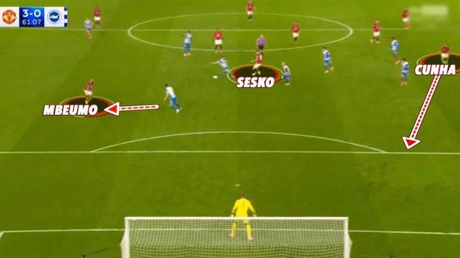 曼联4-2击败布莱顿的比赛中,姆贝莫梅开二度锁定了胜局,他本赛季已经打入5球。其中最后一球就是中卫埃登·海文大力传球,B费巧妙一漏,姆贝莫果断射门入网。