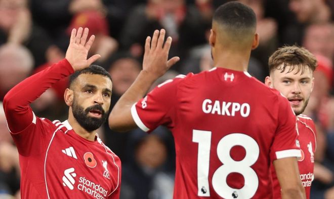 利物浦排出了4231阵型。埃基蒂克顶在最前面。萨拉赫、索博斯洛伊和加克波的进攻组合联袂出击。赫拉芬贝赫和麦卡利斯特组成双后腰。布拉德利、科纳特、范戴克和罗伯逊4后卫首发出战。马马尔达什维利担任首发门将。维尔茨、基耶萨和远藤航坐在替补席待命。