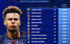 金童奖候选身价排行:杜埃9000万欧居首,库巴西8000万欧第二