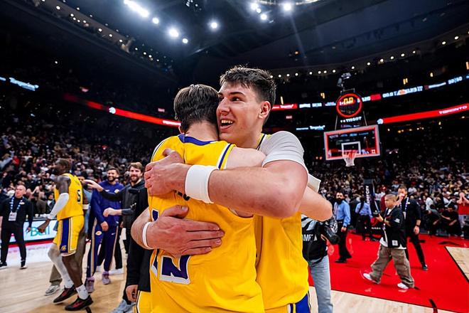本场比赛中,湖人的替补侧翼新援杰克-拉拉维亚(Jake LaRavia)的表现也是有了不小的进步的。拉拉维亚全场出场28分13秒,投篮8中5,三分线外3中2,罚球2中2,得到了14分7篮板2抢断1盖帽的数据,其中还包括了3个前场篮板,还有2次失误和3次犯规,正负值为+1。拉拉维亚在进攻端终于将自己的得分能力、无球移动能力和投射能力发挥了出来。拉拉维亚可能也知道自己需要在场上承担起更多的责任,他显得坚决了许多,这样的变化也取得了积极的效果。拉拉维亚也确实是在进攻端为球队提供了不少的支持。除此之外,拉拉维亚在防守端的表现同样是可圈可点的,他也同样能够在防守端起到很好的效果。拉拉维亚这一系列攻守兼备的表现也是湖人能够战胜实力不俗的对手的重要因素。