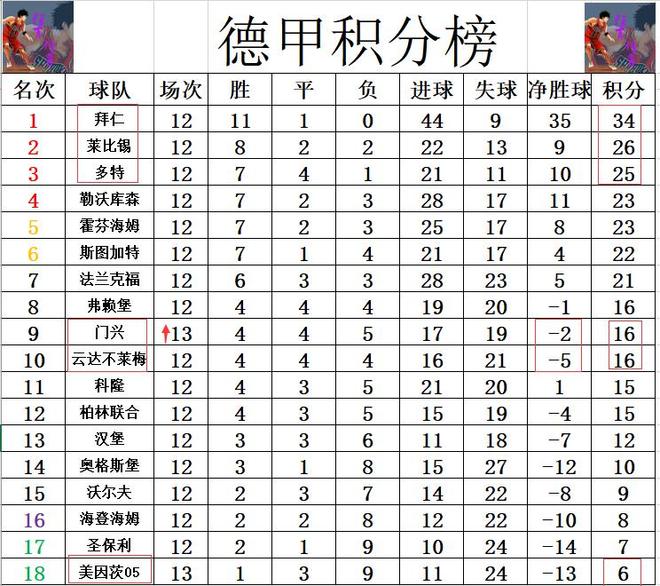德甲最新积分战报 输给拜仁后4胜1平 门兴5轮不败冲进上半区